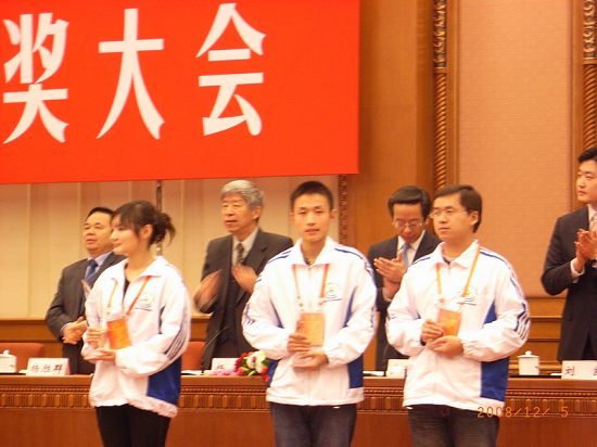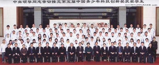12月5日,由共青团中央、全国青联、全国学联、全国少工委共同组织评选的第五届中国青少年科技创新奖颁奖大会在人民大会堂隆重举行。中共中央政治局委员、全国人大常委会副委员长王兆国,中共中央政治局委员、国务委员刘延东出席会议并亲切接见了获奖学生。我校建工学院暖通专业2008级硕士研究生李智虎同学参加了颁奖大会,并与中央领导合影留念。