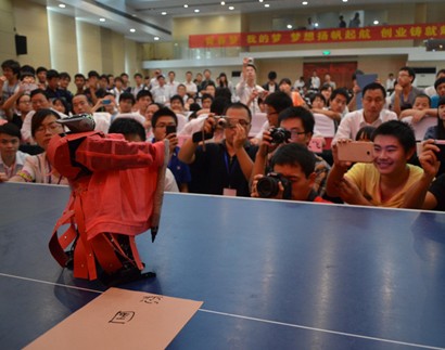 在12日上午举行的开幕式中,我校计算机科学与技术学院的参赛队员巧妙的将中华博大精深的书法文化同现代机器人舞蹈相结合,为开幕式献上了一场精彩绝伦的表演秀。