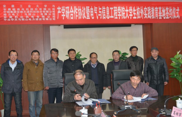 12月17日下午,安徽工业大学产学研合作暨电气与信息工程学院大学生校外实践教育基地签约仪式在我校佳山校区会议中心举行,马鞍山市经济和信息化委员会副主任王黄来,安徽皖南电机股份有限公司等五家知名企业的领导,我校副校长葛芦生、教务处等相关职能部门负责人,电气学院党政领导、部分教师参加签约仪式。仪式由电气学院聂建华副院长主持。