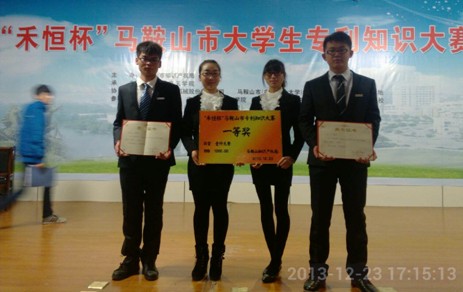 12月23日,由安徽禾恒冶金机械股份有限公司赞助,市知识产权局主办、马鞍山市(安徽工业大学)知识产权与创新方法培训基地协办、河海大学文天学院具体承办的马鞍山“禾恒杯”大学生专利知识大赛决赛在河海大学文天学院图书馆多功能报告厅举行。我校冶金学院吴雪健、徐忠瑞、汪玉、韩俊俊组成的创知队经过激烈的专利知识竞答、辩论赛和专利设想展示等环节,荣获一等奖(第一名),指导教师杨建获优秀指导教师称号。