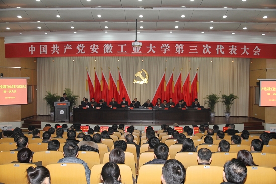 1月7日上午8时50分,佳山校区会议中心四楼报告厅内气氛庄严、热烈,在雄壮的国歌声中,中国共产党安徽工业大学第三次代表大会隆重开幕。