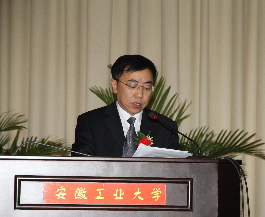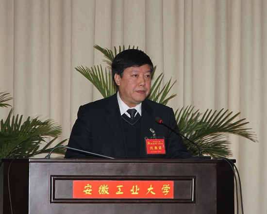 訾金雷代表中共马鞍山市委向大会的召开表示祝贺。他肯定了我校为国家和社会培养了大批高素质的人才,特别是为促进马鞍山乃至安徽的改革开放和现代化建设作出的重要贡献。他表示,马鞍山市委、市政府将一如既往地支持安徽工业大学的建设和发展,切实帮助学校解决发展中存在的突出困难和问题,千方百计为学校提供更加优质的服务,创造更加良好的环境和条件,共同努力把安徽工业大学建成特色鲜明的高水平大学。