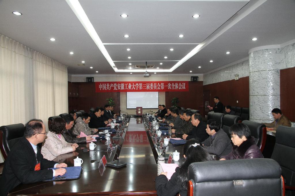 1月8日上午11:30,中国共产党安徽工业大学第三届委员会第一次全体会议在佳山校区会议中心三楼第一会议室召开,21名党委委员参加会议。会议由召集人刘新跃同志主持。