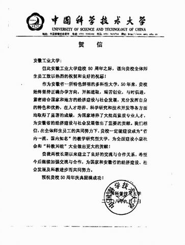 校庆贺信:中国科学技术大学贺信
