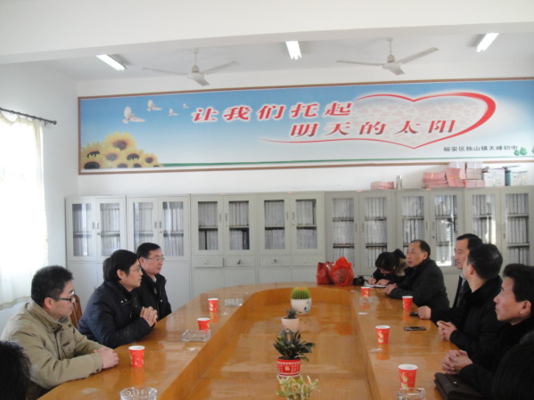 22日下午,在六安市裕安区常务副区长吴广进及有关单位负责人陪同下,魏先文一行首先来到了天峰中学,走访了在校师生,了解该校办学情况,与区、校有关领导沟通了帮扶工作情况,表示要发挥大学的优势进一步做好对天峰中学的帮扶,并向该校负责人转交了对生活困难师生慰问金。