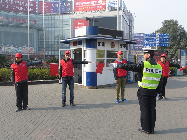 为引导市民形成良好的文明交通习惯,提高市民文明交通意识,营造文明交通的良好氛围,3月22日,建筑工程学院志愿者来到马鞍山新亚百货路口处,开展了交通协勤活动。志愿者配合交警、交通协管员疏导交通,对针对行人和非机动车不遵守交通规则、乱闯红灯、乱穿马路、逆向行驶等行为进行劝导,志愿者们用文明友善的语言,宣传交通安全知识,维护文明交通秩序,获得大家的好评。
