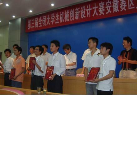 我校将对本次获奖的一等奖作品进一步完善,力争在全国大学生机械创新设计大赛上获得较好的成绩。(下图前排左四为我校许强同学)
