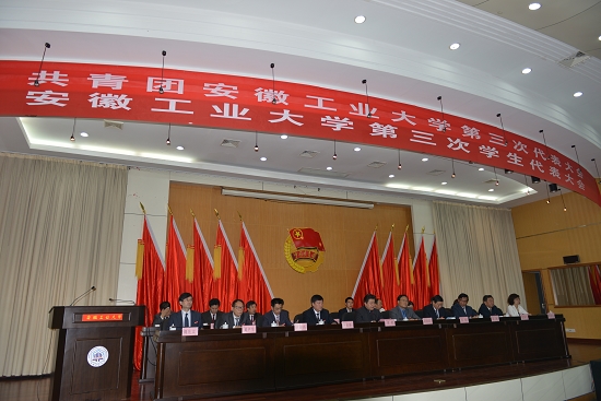 5月10日,共青团安徽工业大学第三次代表大会、安徽工业大学第三次学生代表大会在佳山校区学术会议中心四楼报告厅隆重开幕。团省委副书记周密、团省委学校部副部长刘存磊,马钢团委负责人应邀参加了会议。校领导刘新跃、李家新、祖明、林钟高、陈润、葛芦生、张国宝、魏先文、顾明言,学校有关部门和学院学生工作负责人等参加了大会。