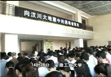 2008年5月19日14时28分,安徽工业大学向四川汶川大地震中失去生命的同胞志哀,向遭受灾难的同胞伸出援助之手。全校上下在悲痛中凝聚不屈的力量,用不屈斗志和实际行动告慰逝者!