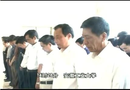 14时15分,在校校领导李辉生、岑豫皖、李明、林钟高、汪光阳、陈润及机关300多干部怀着悲痛的心情,在主楼大厅集合,随着14时28分悼念钟声的响起,全体同志向汶川大地震中的遇难者志哀,愿逝者安息、生者坚强;