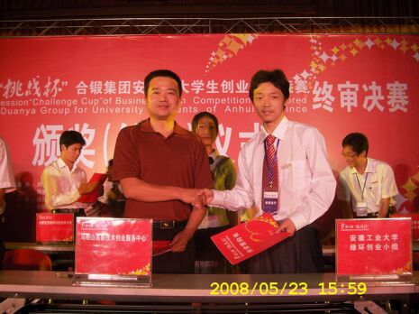 我校“格斯制冷有限责任公司”、“绿环能源开发有限公司”2个参赛项目,经过书面评审、秘密答辩等环节双双喜获金奖,并将代表安徽省参加第六届“挑战杯”全国大学生创业计划竞赛。我校报送的其他4件作品获铜奖,综合成绩在全省名列前茅,并荣获“学校优秀组织奖”。