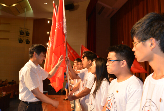 在暑期社会实践启动仪式上,校团委负责人介绍了我校2014年大学生暑期社会实践,西部计划和研究生支教团情况。研究生支教团代表商学院黄杰同学,社会实践团队队员代表化工学院强旭东同学,社会实践团队指导教师代表建工学院陈云亮先后在仪式上发言。社会实践队队员们集体庄严宣誓,表达了青年学子将青春梦融入中国梦的决心。在欢快的乐曲声中,主席台领导为研究生支教团西部计划志愿者颁发荣誉证书,校领导为各社会实践重点团队授旗。