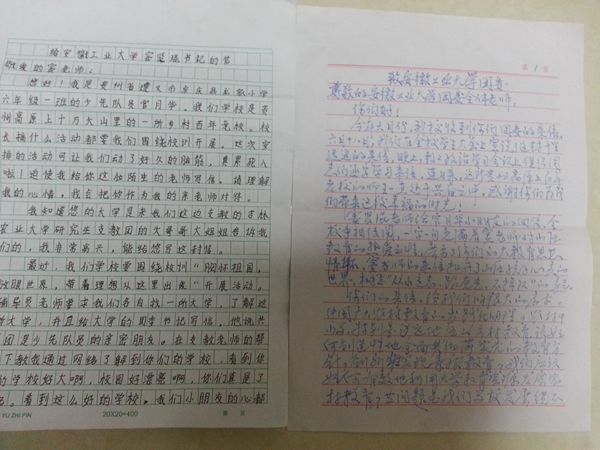 今年五月份,在我校第三次团代会召开之前,校团委收到了来自贵州省遵义市余庆县龙家小学的一名六年级学生官月华的来信。在龙家小学组织的“胸怀祖国,放眼世界,带着理想从这里出发”的活动中,官月华在学校老师的帮助下特意写信给我校团委表达了希望通过勤奋学习,日后能有机会就读我校的心愿。收到这封从十万大山里寄出的来信后,校团委第一时间给官月华小朋友回信,并随信寄出了三枚校徽、三枚团徽和一个U盘,U盘里面是关于我校团学工作的宣传片,希望能让她更加直观的了解我们的校园,鼓励她克服困难,积极上进,努力学习。同时,校团委给龙家小学全体师生写信,希望能够通过加强合作交流,增强青少年的团结进步,为山区教育事业贡献力量。虽然龙家小学地处贵州山区,交通和通信均不便,但校团委克服困难及时将信和物品寄过去。7月初,校团委就收到了龙家小学校长梁中凯老师长达三页的亲笔回信,对我校表达感谢之情。信中说,为鼓励学生,已将赠送的校徽收录在学校纪念室里珍藏起来。同时,也希望与校团委进一步加强合作交流。真诚的来信,熠熠生辉的校徽和团徽,让我校团委与远隔千里之外的龙家小学紧紧连接起来。校团委还将与龙家小学保持沟通联系,为山区教育事业提供积极的帮助。