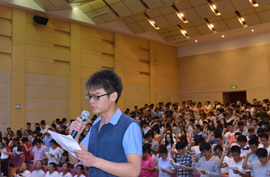 材料科学与工程专业陈子亮同学、冶金学院冶金工程专业吴雪剑同学作为在校生代表和新生代表分别发言。吴雪剑还带领全体新生研究生进行了庄严的宣誓。