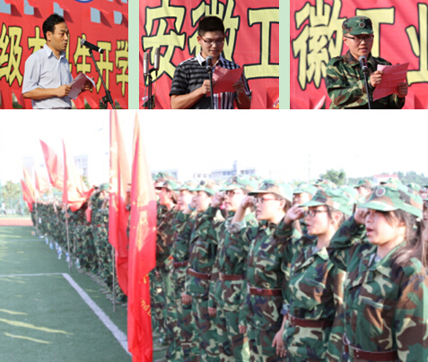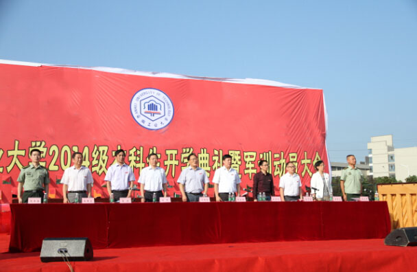 9月16日下午,我校在秀山校区田径运动场隆重举行2014级本科生开学典礼暨军训动员大会。在校校领导刘新跃、李家新、祖明、林钟高、陈润、葛芦生、张国宝、顾明言,马鞍山军分区国动委综合办副主任赵东海中校,武警马鞍山支队参谋长朱纪军中校,学校有关部门负责人出席会议,马鞍山军分区、武警马鞍山支队承训教官,2014级全体辅导员以及全体新生参加了大会。大会由校党委副书记陈润主持。