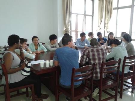 下午课后,在国际教育学院会议室举行了师生座谈会。留学生们畅所欲言,通过中英文介绍了自己的学习、生活基本情况,并表达了对学习、生活的渴望和期盼。任课教师盛腊萍、曹瑞斓、王长莲等介绍了相关课程的学习要求,听取了学生们的意见和建议,并解答了学生的提问。座谈会气氛热烈而融洽。