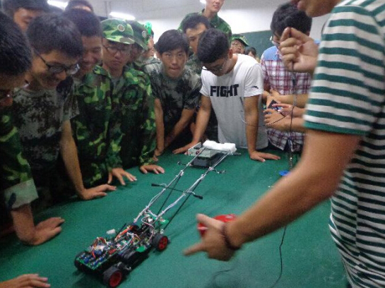 9月24日下午2点展览一开始,就吸引了很多师生前来参观。展览现场展出了智能车、轮廓检测仪、双足机器人、仿人机器人、电磁炮、四旋翼直升机等众多高科技作品。创作者为大家做了详细、生动的解说,并进行现场模拟,演示作品功用。很多大一新生都由衷地发出感慨,觉得“牛人”就在身边,并纷纷表示一定要做一件属于自己的科技作品。本次展出的科技创新作品,都是学院大学生科技创新团队中精挑细选出来的,每件作品都凝结了创作者的聪明才智和辛勤汗水,也展现了电气学院大学生紧扣时代脉搏的创新精神和创新能力。