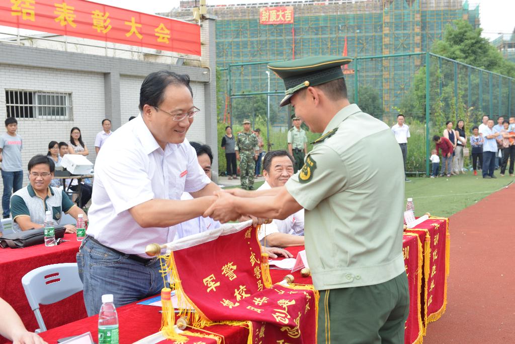 大会在庄严的国歌声中拉开帷幕。校党委书记刘新跃代表学校向承训部队赠送了锦旗。