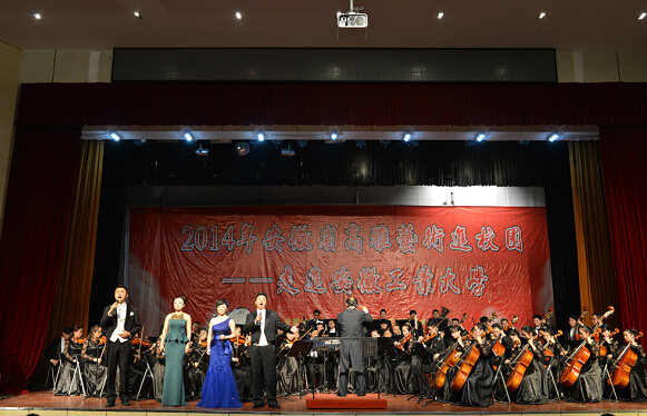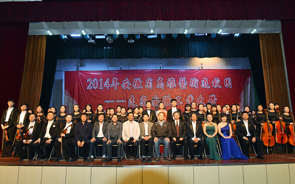 “安徽师范大学青年交响乐团” 是一支由安徽师范大学70余名师生共同参与组建的双管编制的全建制乐团,也是安徽省现唯一一支全建制的大学生交响乐团,由国家一级指挥周晓平先生担任指挥。此次安徽师范大学青年交响乐团走进我校使广大师生近距离感受高雅艺术的魅力,既提高了师生的艺术素养,陶冶了情操,又丰富了校园文化生活,积极营造高雅和谐的校园文化氛围。(撰稿:祝小迁;审稿:窦贤琨 邹珏)