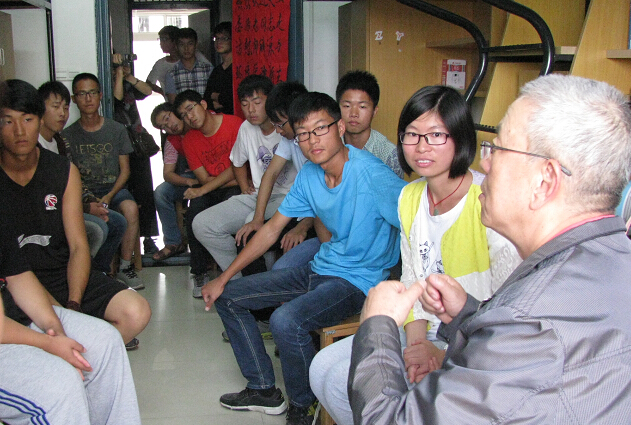 为了帮助2014级新生更好地适应大学生活,关工委组织40多位离退休老同志深入秀山校区近200个新生宿舍,开展走访座谈活动。今年新生宿舍走访活动围绕“践行价值观,共筑中国梦”主题进行。老同志们向同学们阐释了社会主义核心价值观的内容和内涵,希望同学们从现在做起、从自己做起,在学习、生活、工作、待人处事等方面努力学习践行社会主义核心价值观,树立自己的人生目标,规划好大学四年的生活,珍惜时光,勤奋学习,将来为实现中国梦贡献力量。老同志们结合专业知识向同学们介绍大学的学习方法,结合自身经历跟同学们谈理想和行动的关系,给同学们提出中肯的成长成才建议……还有老同志带来自己的书法作品表达自己对同学们的期望。老同志们用满腔的热忱,像亲人般叮嘱、教导着学生们,学生们也敞开心扉,虚心向老同志求教,向老同志倾诉自己的心声,包括自己在思想、学习和生活上遇到的困惑、困难及问题。