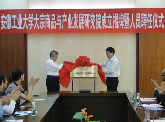 10月20日下午,安徽工业大学大宗商品与产业发展研究院成立揭牌暨人员聘任仪式在我校佳山校区学术会议中心举行。校长李家新、副校长林钟高、宝钢经济管理研究院院长吴东鹰、上海钢联电子商务股份有限公司朱军红董事长特别代表华学丰等出席仪式。校财务处、科研处、学科建设处等有关职能部门负责人,商学院执行院长,副院长以及部分骨干教师和博士代表参加了仪式。仪式由林钟高主持。
