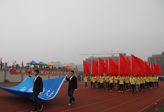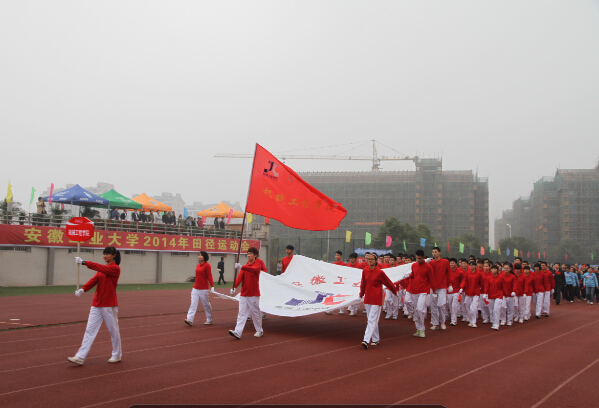 11月1日至3日,我校2014年田径运动会在秀山校区田径运动场隆重举行。本次运动会共有来自各基层单位和安徽工业大学工商学院的38支代表队参赛, 1522人参加了88个项目的比赛,其中学生代表队15支,744人报名参加30个项目的比赛,教工代表队23支,778人报名参加58个项目的比赛。