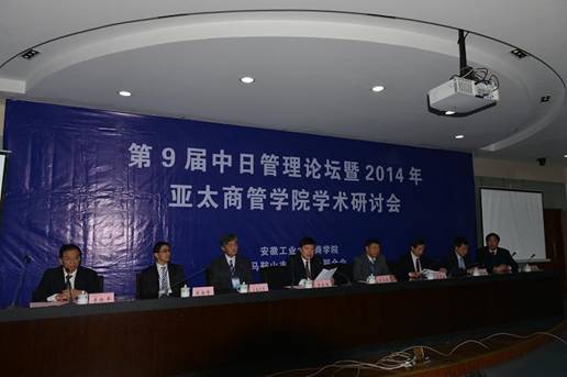 近日,由我校商学院和马鞍山市工业经济联合会联合举办的“第9届中日管理论坛暨2014年亚太商管学院学术研讨会”在我校学术交流中心举行。日本札幌大学营学部小山修教授、台湾玄奘大学副校长曾光荣博士、中国文化大学商学院院长吴青松教授、华东理工大学商学院副校长阎海峰教授以及华菱星马汽车股份有限公司董事长刘汉如,校长李家新教授、商学院相关负责人等出席开幕式。来自札幌大学、玄奘大学、中国文化大学、华东理工大学的40多位学者,马鞍山市工业经济联合会,我校学科建设处、科研处相关人员及相关教师、研究生等参加了会议。在会议期间,校党委书记刘新跃、副校长祖明会见了参加会议的代表和来宾。