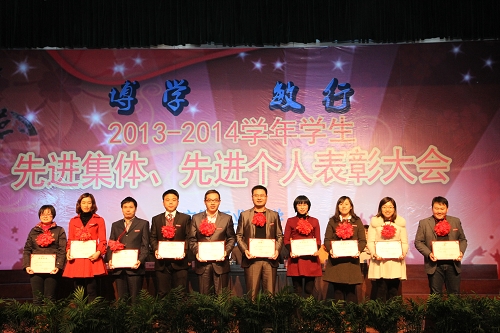 12月8日下午,我校2013—2014学年学生先进集体和先进个人表彰大会在秀山校区大学生活动中心隆重举行。在校校领导刘新跃、祖明、林钟高、陈润、葛芦生、张国宝、魏先文、顾明言及学校相关部门主要负责同志,各学院领导、学生工作负责人、辅导员代表和各学院获奖学生代表、部分学生500余人参加了大会。校党委副书记陈润主持大会。