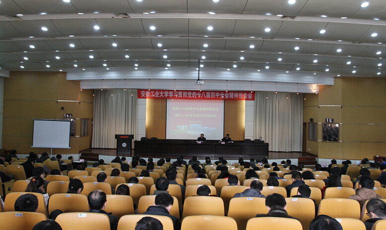 12月9日下午,我校在佳山校区学术会议中心举行了学习贯彻党的十八届四中全会精神报告会,校党委书记刘新跃教授以《学习贯彻四中全会精神,加快推进依法治校进程》为题,从全面准确把握全会和《决定》精神以及加快教育法治建设和现代大学制度建设两个方面,解读了十八届四中全会的基本精神,提出了用法治思维推进我校制度建设和依法办学的基本方略。校党委副书记陈润主持报告会。