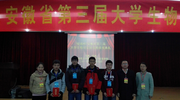12月6日,由安徽省物理学会主办、安徽师范大学承办的安徽省第三届大学生物理实验竞赛(绿杨杯)在安徽师范大学镜湖校区物电学院举行,共有来自安徽大学、安徽师范大学等22所高等院校的88名选手参赛,本次比赛共评出一等奖8名,二等奖12名,三等奖20名。我校化工学院胡浙耀同学荣获二等奖,数理科学与工程学院赵风云同学,冶金学院崔红兵同学和机械学院胡少腾同学获得三等奖。