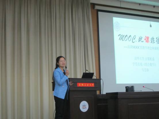 清华大学计算机系副教授马昱春博士应邀到场为全体教师做了“MOOC,此课非彼课—浅谈MOOC的教学理念和课程设计”的精彩报告。马昱春博士结合自己主持的《组合数学》MOOC课程建设过程,以“MOOC是什么”“MOOC与传统课堂的区别”“如何制作MOOC”等三个问题为出发点,总结了MOOC课程制作的关键要素,展示了MOOC课程教学的魅力。