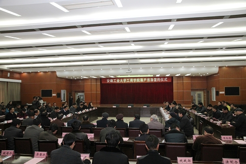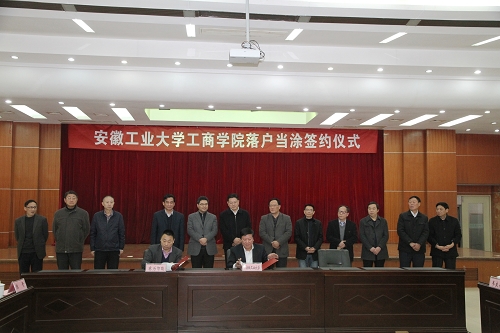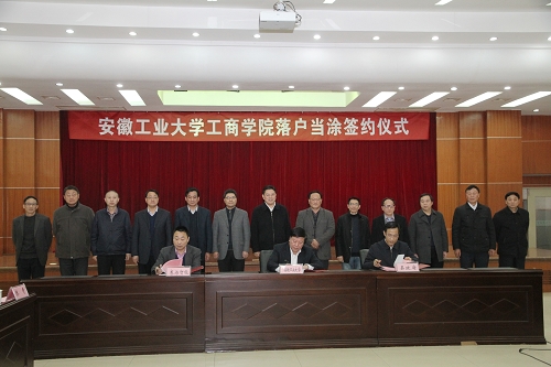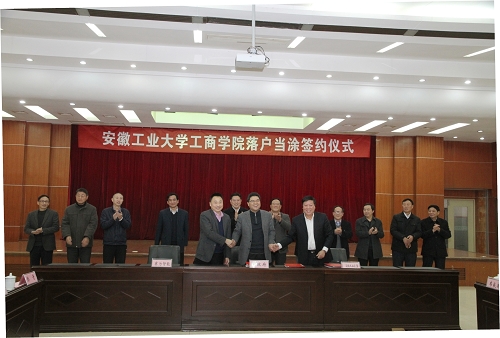 刘新跃首先向关心支持我校发展以及为此次合作付出辛劳的各位领导和各方人士表示感谢。他强调,工商学院合作办学的顺利推进是市县校企合作共建、共谋发展的重大成果,是政产学深度合作的美好结晶,也是实现市县校企四方共赢的战略之举。他指出,在今年6月,马鞍山市与我校签订的战略合作协议中,一项重点工作就是支持安徽工业大学工商学院加快发展。赛为智能是国家级高新技术企业,我校与赛为智能合作办学,实施新的组织管理方式,是促进独立学院规范办学的政策要求,为工商学院的发展注入了新的生机与活力。当涂县产业基础雄厚,经济发展势头强劲,对文化教育非常重视,是工商学院新校园的最佳选址。工商学院落户马鞍山市当涂县实现合作办学,既为工商学院的发展注入了新的生机与活力,也为赛为智能拓展了发展领域,对于进一步提高市、县高等教育发展水平,提升城市文化品位,推动马鞍山转型升级、加快发展,都具有积极意义。他表示,校企双方将针对市县经济社会发展现状和需求,进一步明晰工商学院的办学定位和发展思路,强化办学特色,提升办学水平,着力为地方和区域培养数量更多、质量更高的高级专门人才,努力使工商学院成为省内一流的独立学院。