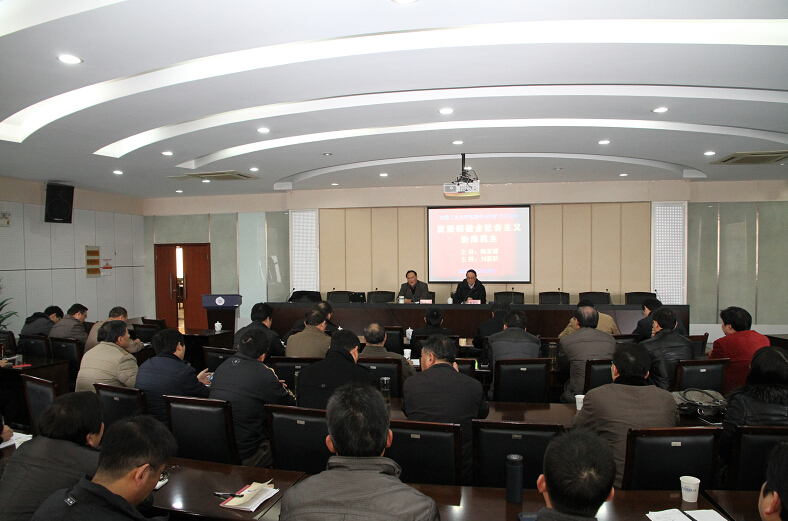 12月29日上午,校党委理论学习中心组召开2014年第十次学习会议,安徽师范大学博士生导师陶富源教授应邀作“发展和健全社会主义协商民主”专题报告。校党委书记刘新跃主持会议。