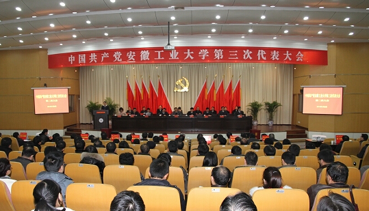 1月7日至8日,中国共产党安徽工业大学第三次代表大会隆重召开。校党委书记刘新跃、纪委书记张国宝分别代表安徽工业大学第二届党委会、中国共产党安徽工业大学第二届纪律检查委员会向大会作工作报告。大会选举产生出新一届党委委员、纪委委员。审议并一致通过了《关于中共安徽工业大学委员会工作报告的决议》、《关于中共安徽工业大学纪律检查委员会工作报告的决议》、《中国共产党安徽工业大学代表大会常任制实施办法》(试行)。