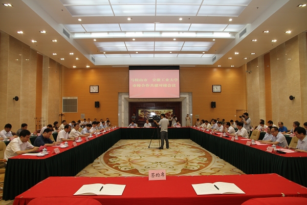 6月20日,马鞍山市、安徽工业大学举办市校合作共建对接会议。旨在深化政产学研协同创新机制,进一步提高我校人才培养质量、科技创新能力、社会服务和文化建设水平,推动马鞍山市转型升级、加快发展。马鞍山市四大班子领导,我校全体党政领导等参加了会议。双方签订了《市校相互支持共谋发展战略合作协议书》。