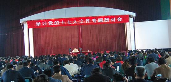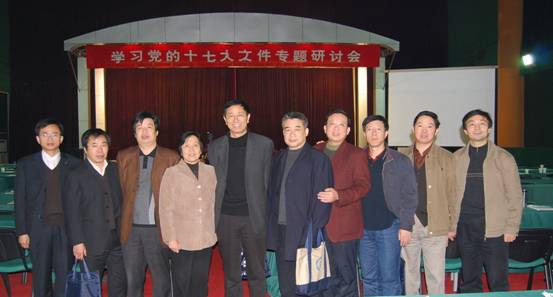 在这次学习十七大文件专题研讨班上,中国科学社会主义学会会长、中央马克思主义理论研究和建设工程首席专家、博导赵耀教授,国家行政学院副院长、博导韩康教授,中国社科院政治研究所副所长房宁教授,中央党校著名党章研究专家叶笃初教授,中央党校博导梁妍慧教授、吴忠民教授、周锡荣教授、亓成章教授、秦刚教授,中央党校蔡霞教授、刘海涛教授、周熙明教授、谢春涛教授等十三位专家教授分别围绕:举什么旗帜、走什么道路,解放思想,党章修改,经济建设,政治文明建设,社会建设,党的建设,改善民生,十七大文件的基本精神、主要内容和重大意义,国际形势和一国两制问题,文化建设,贯彻落实科学发展观,改革开放的历史进程和基本经验等16个专题对十七大文件和精神作了精彩解读。