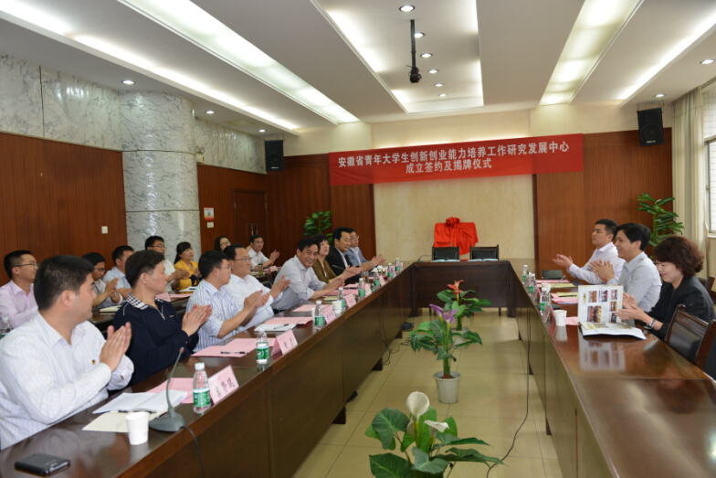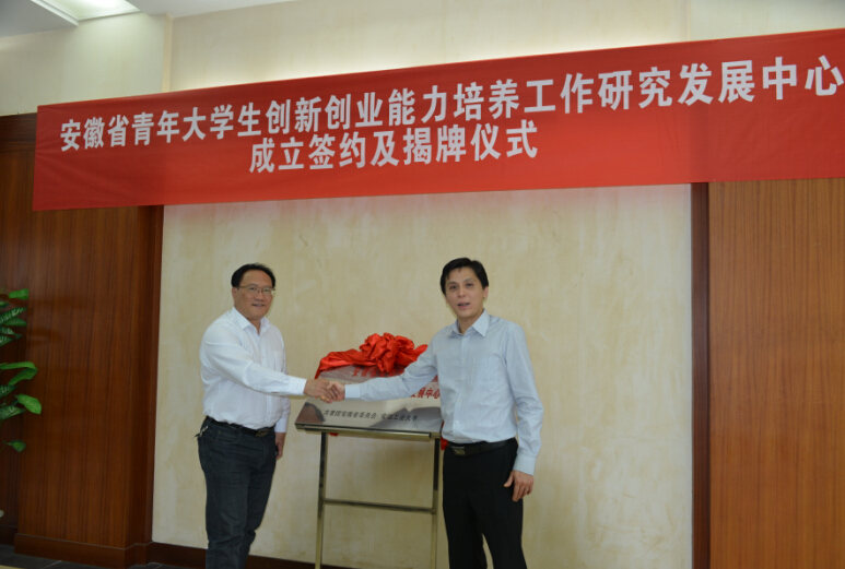 4月29日上午,团省委与我校共建安徽省青年大学生创新创业能力培养工作研究发展中心成立签约及揭牌仪式在佳山校区学术会议中心举行。团省委副书记杨正、校党委书记刘新跃、校党委副书记陈润、马鞍山团市委负责人、团省委和学校相关部门负责同志出席了仪式。