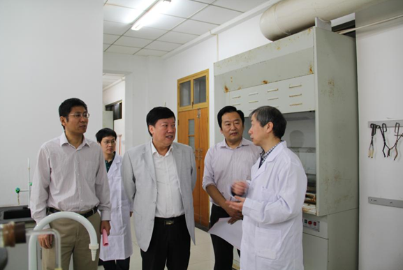 工创中心主任冷护基和化学与化工学院院长崔平介绍了我校各类科技创新、学科竞赛的获奖情况以及大赛的前期准备和开展情况。在相关部门和化学与化工学院领导的陪同下,李家新参观了我校化学实验室。