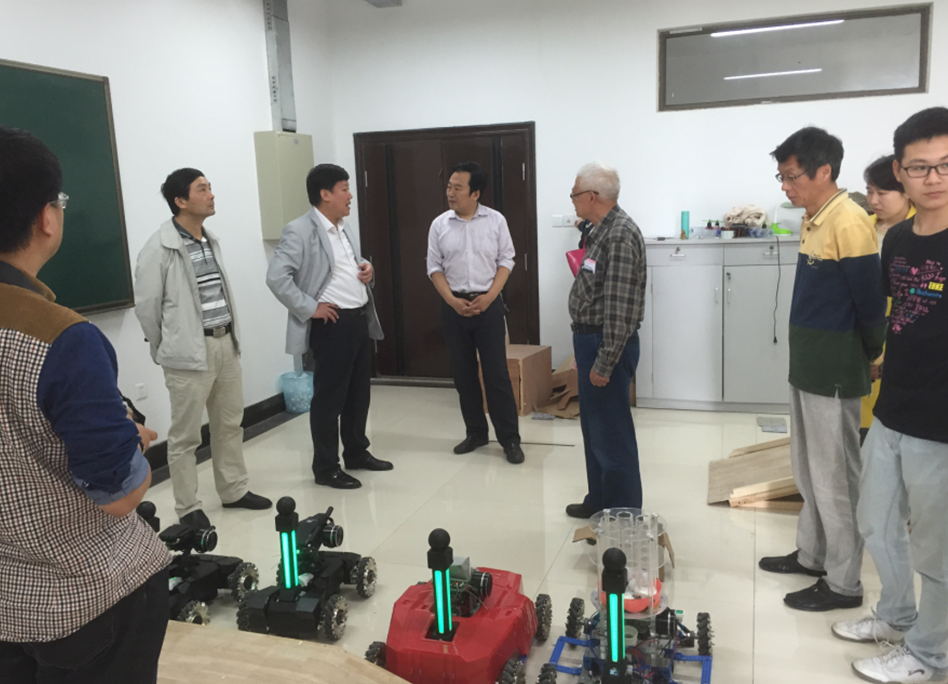 5月10日上午,校长李家新在工程实践与创新中心负责人的陪同下到电气学院,就学生科技创新活动及学科竞赛开展情况进行了专题调研,并与正在积极备战2015RoboMasters全国大学生机器人大赛的同学进行了亲切交流。