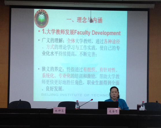 5月22日下午,北京理工大学教育研究院党委书记、北京理工大学教学促进与教师发展中心主任庞海芍教授应邀来校作了题为“大学教师发展的理念与实践”的报告。副校长林钟高出席并主持报告会。各学院(部、教学单位)教学工作副院长、系主任、中青年教师,教师能力发展中心和教务处科级以上人员200多人参加了报告会。