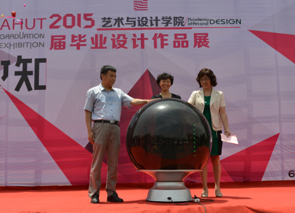 6月11日上午,艺术与设计学院2015届本科毕业生作品展在秀山校区振华图书馆开幕。省经信委副巡视员陈家宝、马鞍山市副市长王艳、副校长顾明言出席并共同开启开幕式启动球,南京艺术学院李亦文教授,市文旅委、经信委、软件园区、我校相关部门负责人,企业代表参加开幕式。