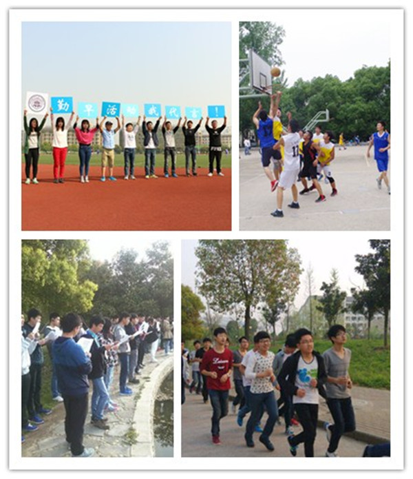 为了让越来越多的同学加入到早起锻炼的行列中。校院学生组织充分发挥“三自”功能,组织同学们进行阳光晨跑、晨操。校学生会开展新生篮球赛、宿舍文化节,“我为勤早行动代言”等活动。管理科学与工程学院以班级为单位组织同学们走出寝室,走向大自然,走到阳光下,开展阳光体育锻炼活动。计算机学院组织同学们学习广播操,展现班级风采。商学院开展学生乒乓球联赛促进同学间的交流合作,尽情的享受运动的快乐。数理科学与工程学院开展“勤早周末”活动,组织班级开展三对三篮球赛,各班级竞相角逐,争夺桂冠。