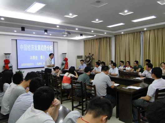 近日,铜陵学院副院长、经济学博士、全国优秀教师、安徽省教学名师冯德连教授应邀来我校作客“商学院院长论坛”,为商学院师生作了题为“中国经济发展趋势分析”的学术报告。商学院执行院长洪功翔主持报告会。
