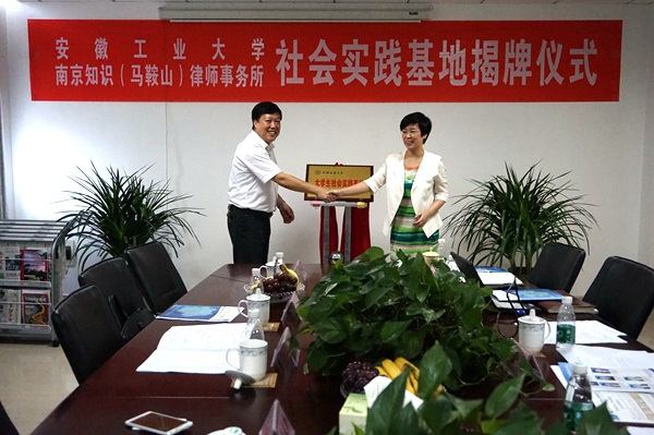 李家新一行还赴南京知识(马鞍山)律师事务所走访座谈。在座谈会上,李家新介绍了我校学科专业特点和人才培养特色。希望队员们在实践中内化专业知识,在创新中拓展综合素质,努力争取优异成果。座谈会后,李家新和南京知识(马鞍山)律师事务所高级合伙人刘金凤律师共同为大学生社会实践基地揭牌。