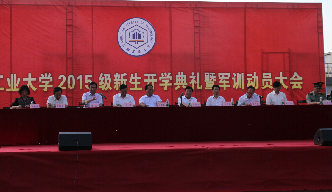9月10日下午,我校在秀山校区田径运动场隆重举行2015级新生开学典礼暨军训动员大会。学校全体党政领导,马鞍山军分区国动委综合办副主任赵东海中校出席会议。校党委书记刘新跃向军训师、团授旗,校长李家新作开学典礼致辞,党委副书记陈润进行了军训动员,副校长葛芦生主持大会。学校有关部门主要负责人、承训教官、2015级全体辅导员以及全体新生参加了大会。
