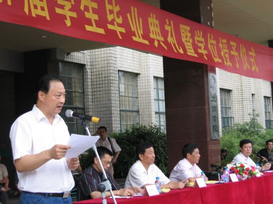 毕业典礼在雄壮的国歌声中开始,岑豫皖校长发表了热情洋溢的讲话,他代表学校和全体教职员工向3900多名毕业生表示最热烈的祝贺,并对全体毕业生提出了几点希望,他希望同学们走上工作岗位时,需要思考:我能够做些什么?我应该做些什么?一个人,几十年事业生涯,工作可以换,地点可以变,职位可能升降,责任也可以增减,但是做人的目标永远不能丢失:要做一个对社会有益的人,要做一个勇于进取的人!他还希望同学们要保持勤于学习的习惯和能力、踏实做事的态度、诚实做人的品格!做一名无愧于社会、无愧于时代的优秀大学生。