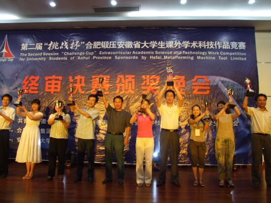 5月28日至30日,第二届“挑战杯”合肥锻压安徽省大学生课外学术科技作品竞赛终审决赛在我校隆重举行。本届大赛由团省委、省教育厅、省科协、省学联共同主办,合肥锻压集团协办,我校承办。几个月来,通过校级预赛和层层选拔,全省34所高校190件作品进入终审决赛。15名评委会专家对全部作品逐一进行评审,对50余件作品进行了质询。经过专家评审、作品答辩和作品展示等环节,13件作品获得大赛特等奖,24件作品获得大赛一等奖,62件作品获得大赛二等奖,91件作品获得大赛三等奖。16所高校获大赛“优秀组织奖”,11所高校获“优胜杯”,中国科学技术大学荣获大赛“挑战杯”。