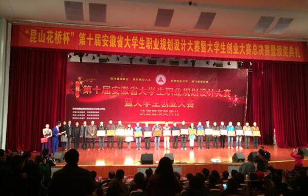 12月26至27日,由安徽省教育厅、安徽省人社厅、团省委主办的第十届安徽省大学生职业规划设计大赛暨大学生创业大赛总决赛在安徽医学高等专科学校举行。经过与全省高校79组选手的激烈角逐,我校能源与环境学院葛强等同学组建的《马鞍山麦秸文化传媒有限公司》创业团队荣获金奖,冶金工程学院李宁同学的《面向小微企业创新发展的知识产权之路》职业规划设计作品荣获就业组银奖,我校荣获“最佳组织奖”。