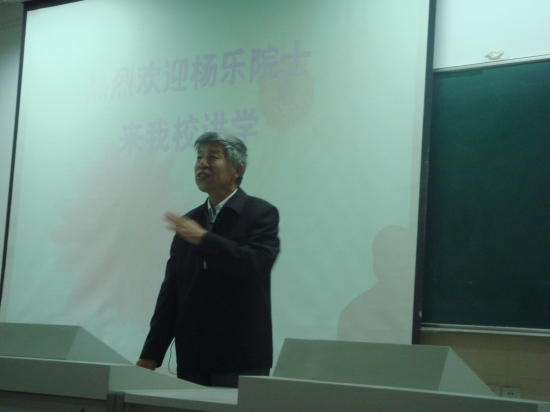11月13日,著名数学家、中国科学院数学研究院杨乐院士在市政府副市长刘卓军陪同下来到我校,就“关于数学学习的重要性和数学未来应用前景"的主题为师生作了学术报告,并回答了部分同学的提问。数理学院部分教师和相近专业学生近500人聆听了杨院士的报告。校党委书记李辉生出席了报告会,报告会由校长岑豫皖主持。
