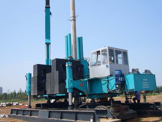 正在静压的第一根管桩
